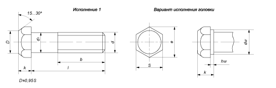 - Болт с шестигранной уменьшенной головкой, класс точности В ГОСТ 7796-70